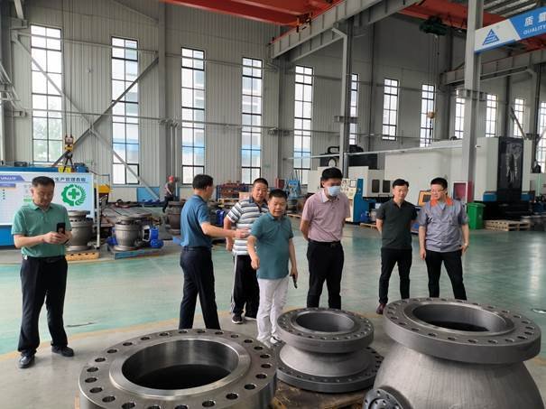 谢正泽董事长陪同李宗臣一行深入到生产车间进行了参观考察,深入公司各生产车间机加工、球体加工、喷涂、研磨、装配、试压、最终检验、涂装发货等主要工序过程以及加工制造过程中的半成品和生产完成的阀门成品存放区进行了观摩。公司宽阔的厂房、精良的装备、精细的管理以及员工丰富的专业知识和有素的工作能力,给客人留下了深刻良好的印象。